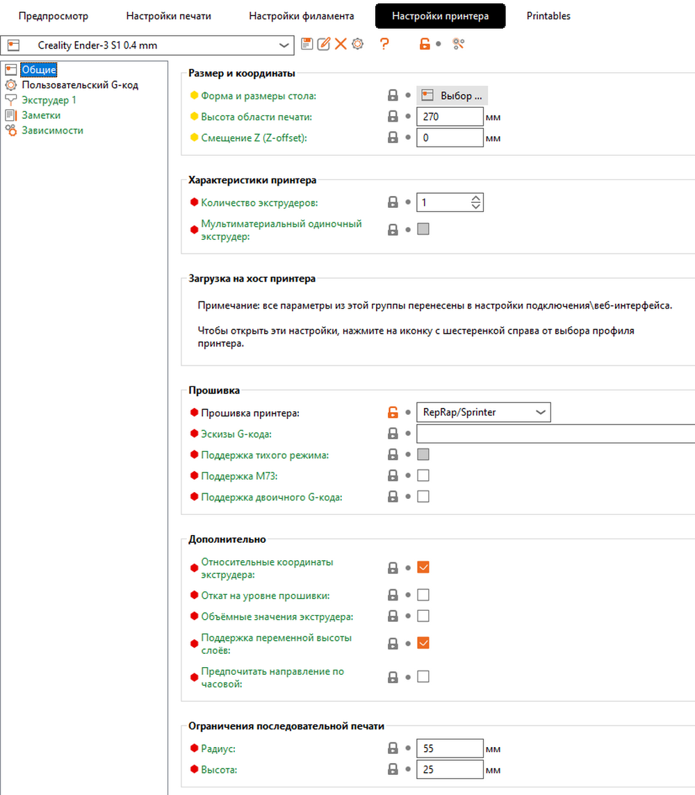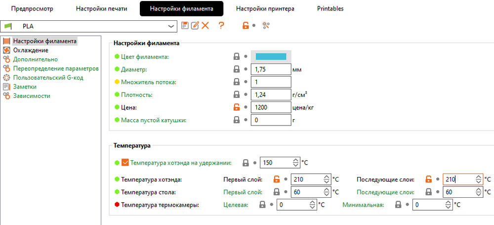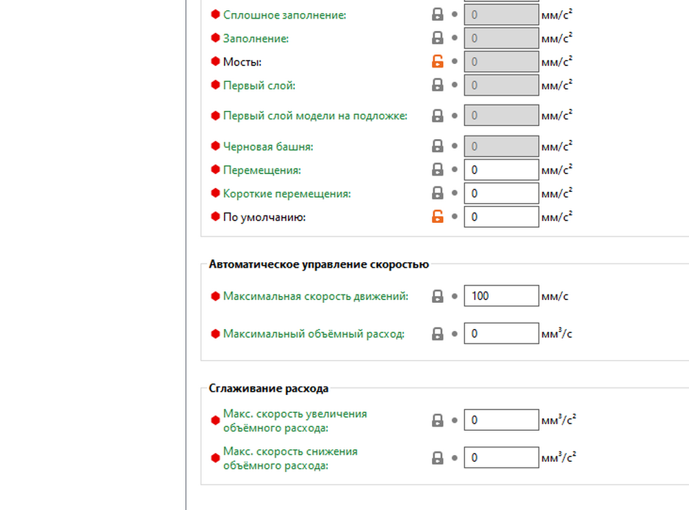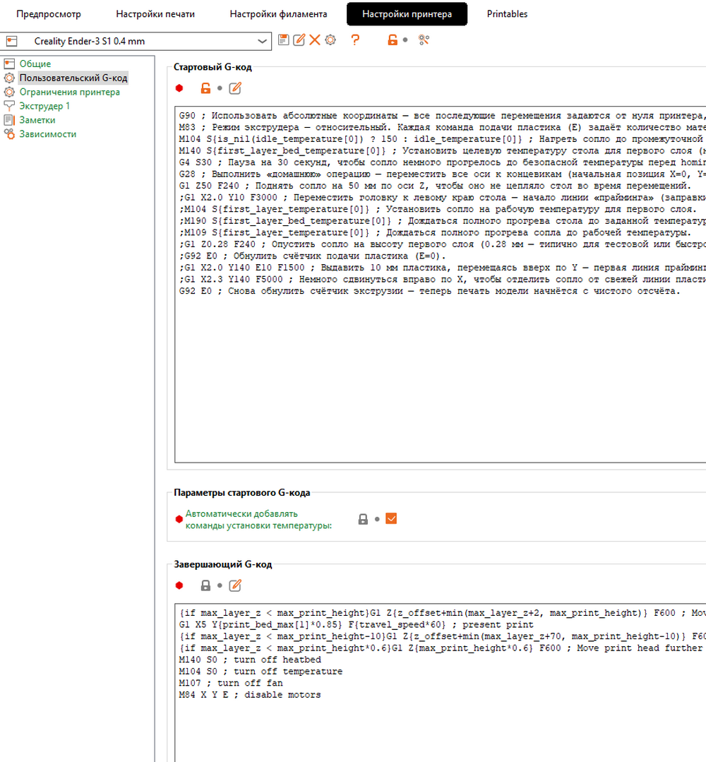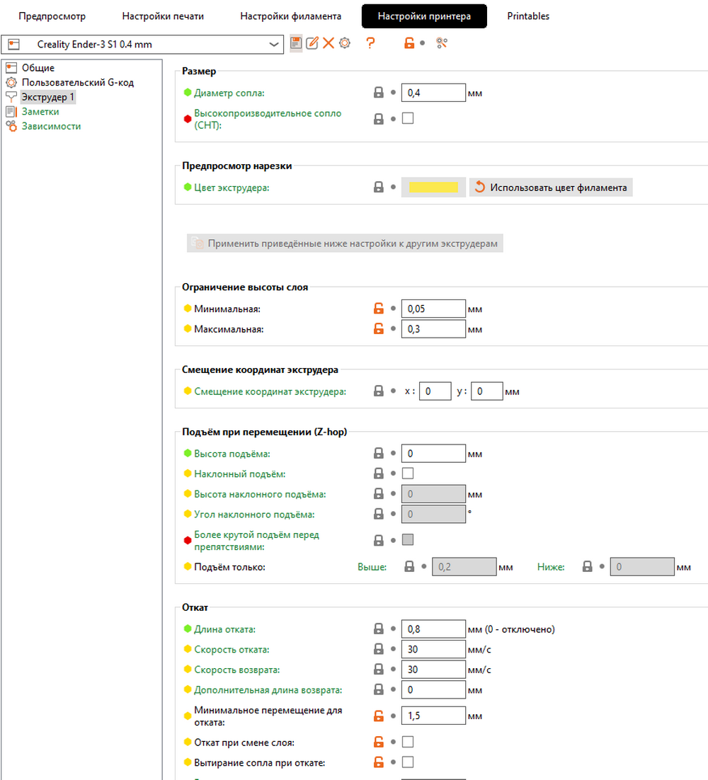 Это настройки для старта. Далее их нужно корректировать по результатам печати.